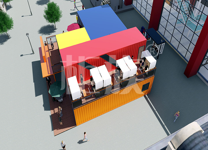 The colorful appearance is eye-catching, and the container's optional combination function can extend the usable area of the space as required. The first floor is for display and the second balcony is for rest and entertainment.
